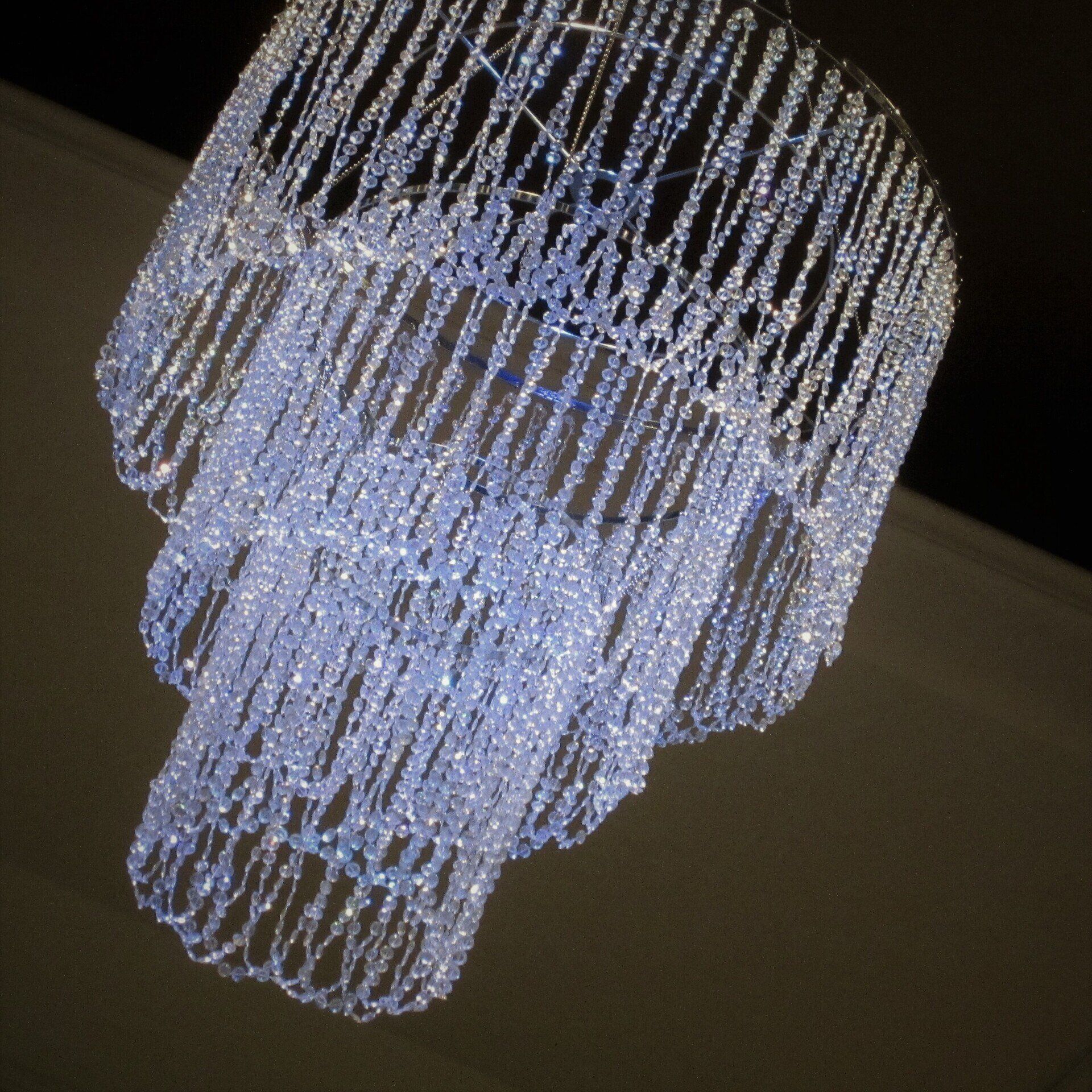 For this colorful and hypnotic event, the crystal columns continuously faded from one color to the next, out of sequence from one another, and through all the colors of the rainbow! These, along with one of my matching crystal chandeliers hung over the main bar (and executing the same color changes) were among the centerpieces of the décor!