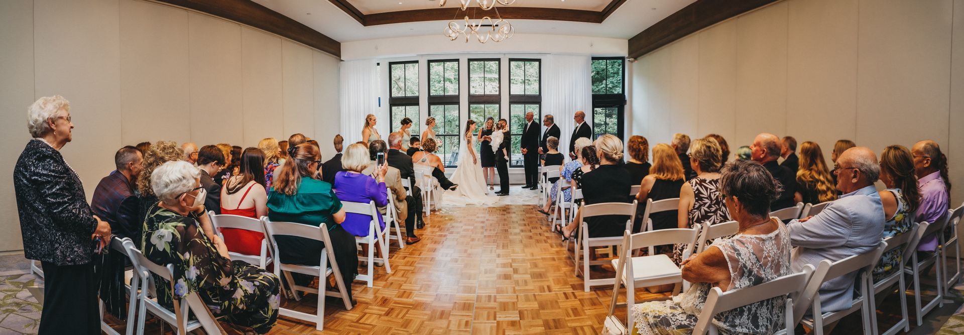 - indoors in the middle section of the ballroom with the airwalls closed to conceal the dining tables